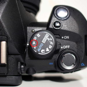 Programmwählrad (hier der E-520) in Stellung "A" für "Blendenvorwahl" bzw. "Zeitautomatik"