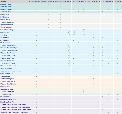 Screenshot "Übersicht Blitzzubehör" - (c) Olypedia.de