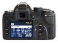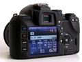 Rückansicht der Olympus E-520 mit eingeschaltetem Super Control Panel